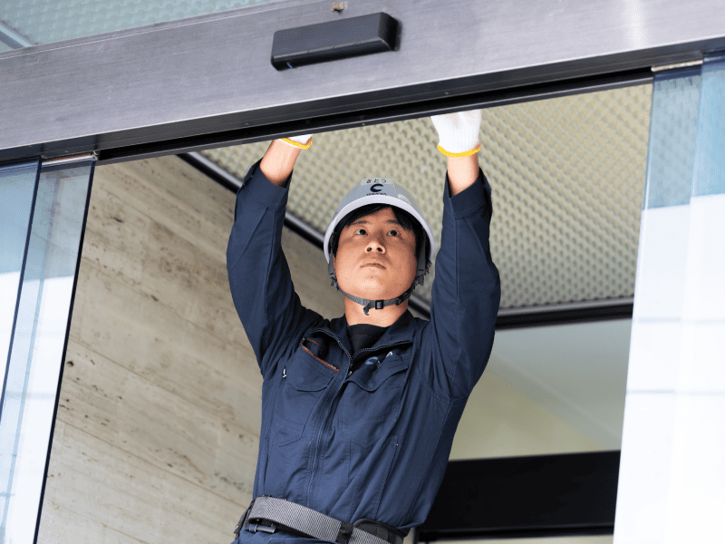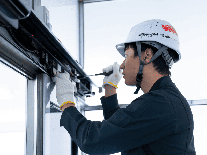 当社では、自動ドア施工技能士資格の取得をサポートしています。自動ドアは機械や電子機器で構成されており、それらを仕様書に合わせて的確に施工するには高い技術が必要です。この資格には1級と2級があり、1級の技能士には厚生労働大臣から、2級の技能士には都道府県知事から合格証が交付されます。