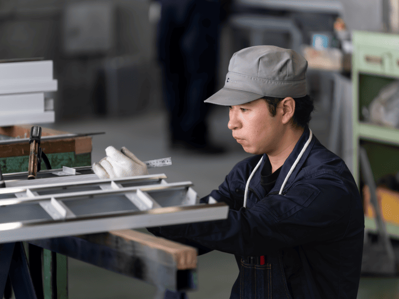 私たちは、営業、設計、技術、製造と各部門が連携し、新規開拓からアフターメンテナンスまで自動ドアに関して社内一貫体制のコミュニケーションのもと、高品質な自動ドア・ステンレスサッシをお施主様にお届けしています。